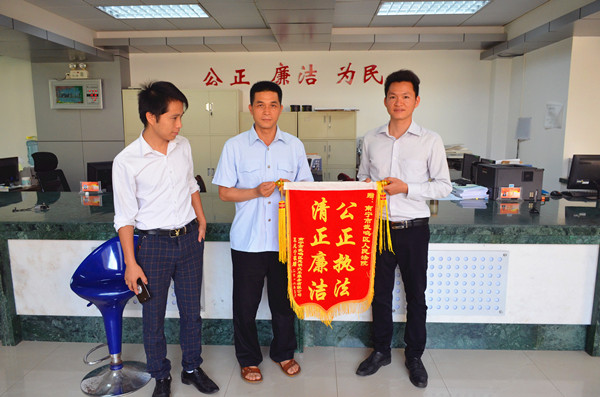 ????2018年5月25日上午,南宁市志明汽车服务公司来到我院,将一面?“公正执法,清正廉洁”的锦旗送到民二庭赵法官手中,并说道:“老赖难对付,多亏了赵法官秉公执法才得以追回欠款,特送来锦旗表示感谢!”????该公司有多个案子在民二庭受理,最近一个已结案件是租赁合同纠纷。被告向原告南宁市志明汽车服务公司购买了一批玻璃棉板及配件,支付了部分货款后,剩余货款未向原告支付。原被告庭审过程中争议较大,双方都坚持自己的意见。经过审判长赵法官的耐心调解,双方才各自让步,最终当庭达成调解,高效结案。