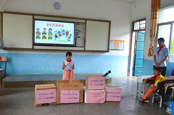 “我想要一个篮球”“我想打羽毛球”“我想买苹果吃” ……书包、篮球、苹果、羽毛球拍……这些普通平常的东西,却是一些贫困孩子不敢多想的心愿。为了庆祝六一儿童节,5月31日下午,我院党组成员、副院长谭芳兰、民一庭负责人黄成果、妇女儿童维权岗潘红玉法官一行代表我院工委和团支部来到我院扶贫挂点村武鸣区锣圩镇清凤村开展“法治点亮心愿,携梦共度六一”爱心助力活动。为清凤小学20名小朋友们送上慰问品,向5名困难儿童发放了慰问金,并把“微心愿”礼物带到了学校教室,亲手把礼物送给许下心愿的同学,用特殊的礼物和满满的爱心送去对孩子们的关怀。 活动中,谭芳兰副院长向孩子们询问了日常生活及学习情况,鼓励他们要勇于面对暂时的困难,树立良好的生活信心,保持积极向上的学习态度,用知识改变命运,将来成为国家的栋梁之材。希望老师们继续尽心尽责,做学生成长成才的引路人。清凤小学的孩子们为谭芳兰副院长一行佩戴上鲜艳的红领巾,学生代表作了发言,表示一定会努力学习,回报社会,决不辜负叔叔阿姨们的期望。随后,谭芳兰一行向孩子们发放了蛋糕、牛奶、水果等食品,与孩子们亲密交谈。在一句句贴心的话语中,让孩子们对未来充满憧憬。孩子们用纯真心向法官叔叔阿姨们说出了长大后的梦想,更多的小朋友表示希望成大后梦想也能成为一名法官,这让谭芳兰副院长欣慰不已,她表示,法院将一如既往地开展对贫困儿童的关爱和帮扶活动,让每一个孩子在充满爱心的集体内幸福、快乐地成长。
